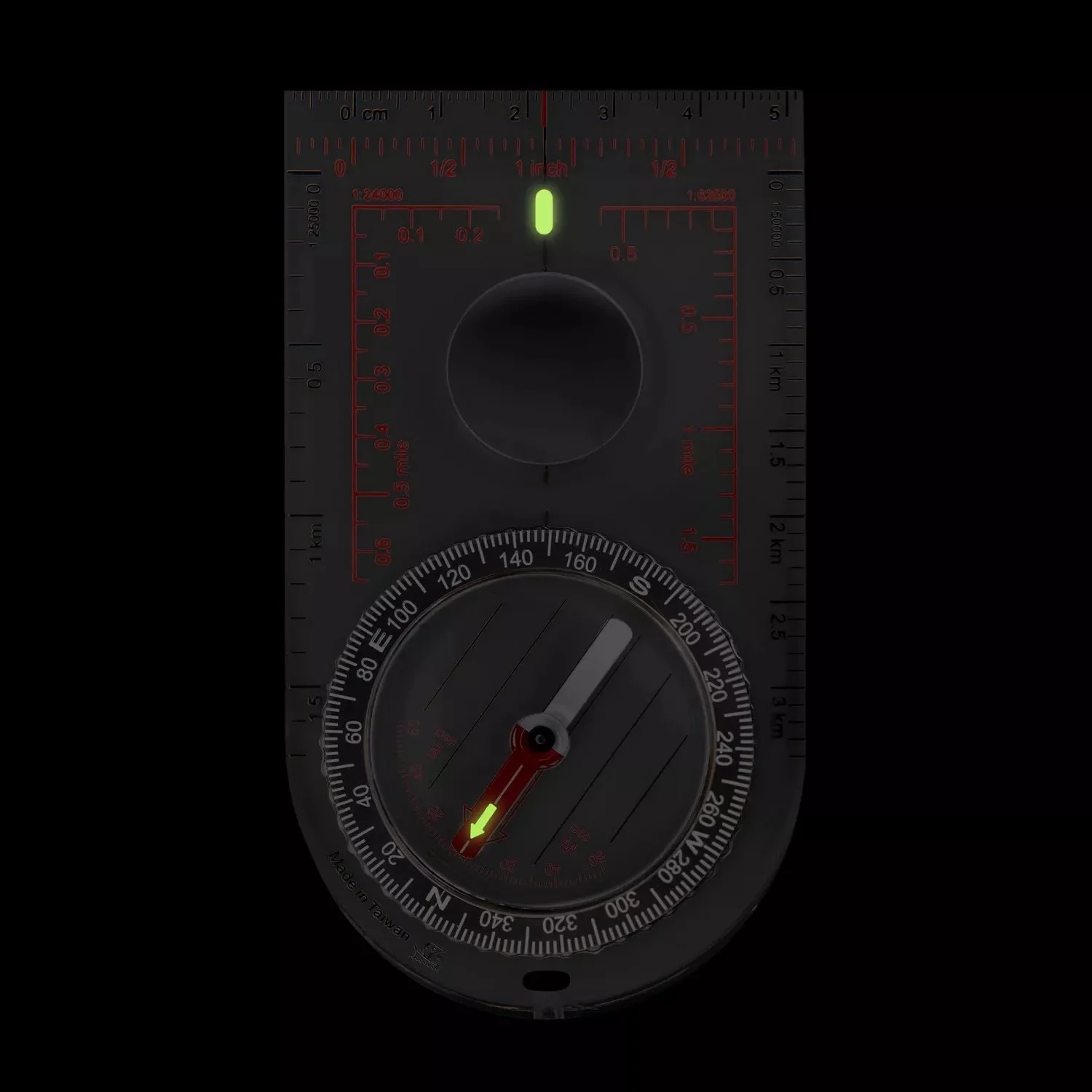 Equipped with a degree scale set at one-degree increments, the Scout Mk2 allows for precise direction setting. It also includes a practical ruler with both centimeter and inch markings, making distance measurement on maps fast and convenient. With an accuracy of ±3 degrees, this compass is a trustworthy tool for hikers, campers, and outdoor adventurers alike.